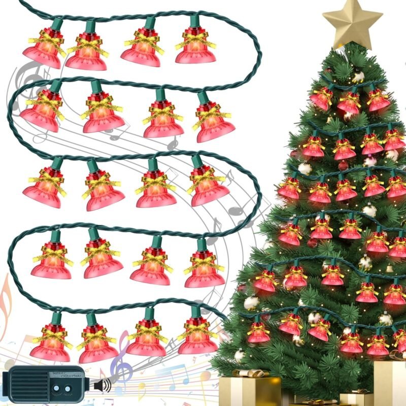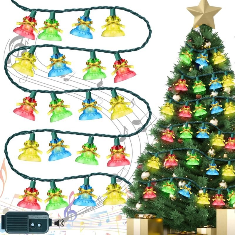 100 Bulbs 32 FT Christmas Snowflakes Lights with Music, Singing Led Snowflake String Lights Plays 25 Holiday Songs, 7 Function Mode, Adjustable Volume and Mute, Musical Christmas Lights