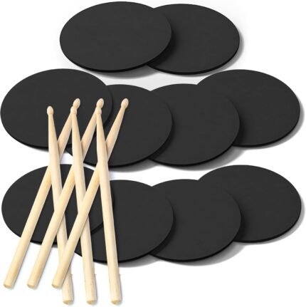 XCEL 10 Drum Practice Pads + 6 Drum Sticks – Portable for Snare, Drum Kits – Non Slip for Stability – 11 Inch Round x 3/8 Inch Thick (10 Drum Pads + 6 Drum Sticks)
