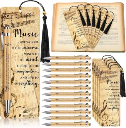 12 Set Christmas Music Gift Music Themed Party Favor Marching Band Choir Gift Include Bamboo Pen and Beaded Bookmark with Tassel for Christmas Musical Lovers Graduation Party Favors Rewards