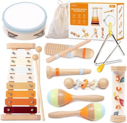 Toddler Musical Instruments Sets, Montessori Wooden Percussion Educational Baby Musical Toys Xylophone Maracas Tambourine for 2 3 4 Year Old Girls Boys Christmas Stocking Suffers Gifts for Kids