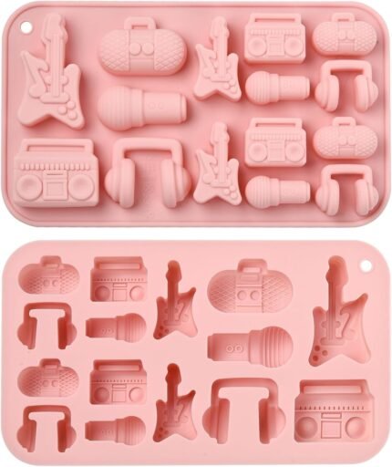 UR URLIFEHALL 2 Pcs Music Themed Silicone Molds Guitar Audio Microphone Chocolate Molds for Baking Jelly Candy Cake Decoration Biscuit Dessert