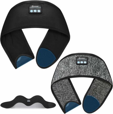 2PCS Adjustable Bluetooth Headband Headphones, Sleeping Headphones with Thin Speakers Mic for Men/Women, Yoga, Running, Workout, Travel, Meditation (Grey&Black)