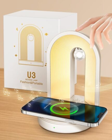 3-in-1 Night Light with Wireless Charger, Music Bedside Lamps with Bluetooth Speaker Phone Wireless Charger Touch Lamps for Nightstand Dimmable Table Lamp for Bedroom Desk Lamp Holiday Gifts