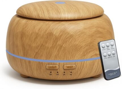300ML Essential Oil Diffuser with Remote Control,Ultrasonic Aromatherapy Air Diffuser Humidifier,Aroma Diffuser with 7 LED Color Changing Light for Large Room,Home (Dark Wood Grain)