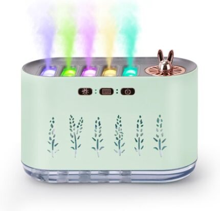 5 Nozzle Music Sync Humidifier Diffuser, RGB LED Light Show with 22 Colors & Voice Activated Mode, 700ml Cool Mist Aroma Essential Oil Diffuser for Home, Bedroom, Office, Yoga (White) (Green)