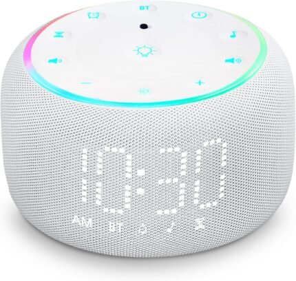 White Noise Machine Alarm Clock: Auto-Dimmable Clock for Bedrooms – 5W Stereo Bluetooth Speaker – Sound Machine with 24 Sleep Sounds for Adults Kids
