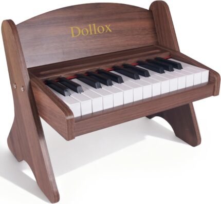 Dollox Kids Piano Digital Keyboard, 25-Key Wooden Electric Keyboard Toys for Toddlers, Baby Musical Instrument for Beginners, Mini Music Birthday Gift for 3-7 Year Old Boys and Girls