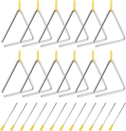SOUJAP 12 Pack 6 Inch Triangle Instrument, Musical Steel Triangles with Striker, Hand Percussion Triangle Instrument for Music Clubs, Band