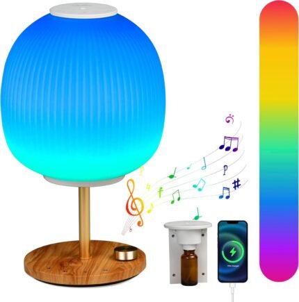 BAYSQUIRREL RGB Bedside Table Lamp 14 Inch with Bluetooth Speaker & Essential Oil Diffuser – Color Changing Glass Lamp for Bedroom, Living Room, Nightstand – Aromatherapy, Mood Lighting, Stereo Sound