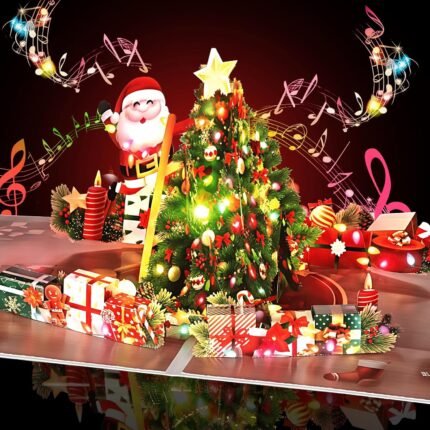 GREETING ART Pop Up Christmas Cards with Lights and Music, Santa Claus and Christmas Tree Design, Musical Holiday Greeting Cards New Year Gift Card