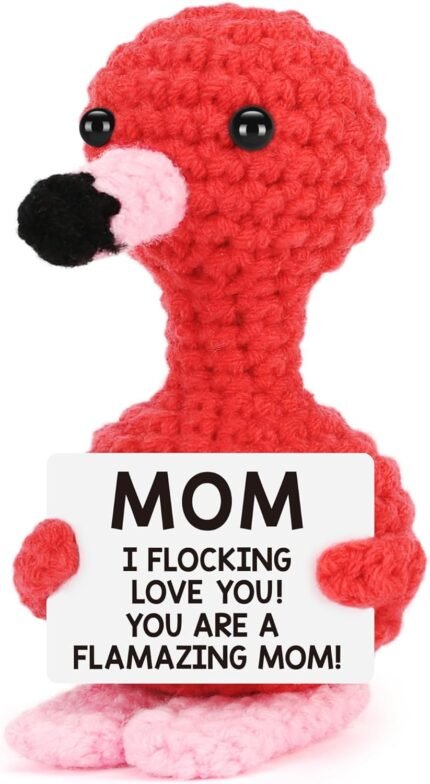 Gifts for Mom Christmas Mom Gifts from Daughter Son, Xmas Stocking Stuffers Love Mother Birthday Card Gift for Mother in Law Stepmom Mama , Funny I Love You Mum Present Handmade Crochet Flamingo