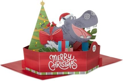 Hallmark Paper Wonder Musical 3D Pop-Up Christmas Card With Light (Happy Hippo Under the Tree)