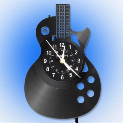 KingLive Music Wall Clock, Guitar Vinyl Clock, LED 6-Color Art Night Light Home Decor, Music Instrument Clocks Halloween for Men Guitarist