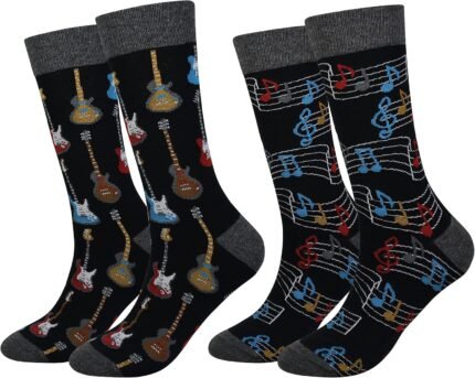 Haysandy 6 Pairs Men Music Socks Guitar Casual Dress Socks Instruments Crew Foot Cover for Music Lover Holiday Gift