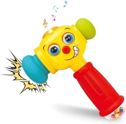 Toy Hammer w/Lights, Learning Mode and Music Mode – Baby Hammer Toy Plays 6 Short Kids’ Songs, Counts 1-10 w/Baby, Changes Funny Expressions and Lights Up – for Kids 12 Months and Older