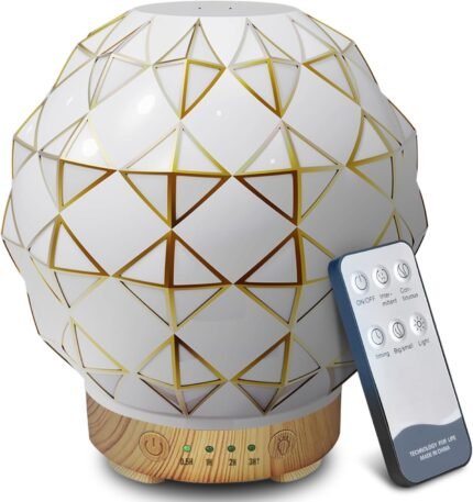 Essential Oil Diffuser, 100ML Handcrafted Glass Aromatherapy Diffuser with 7 Color LED Lights, Remote Control, Cool Mist Humidifier, Timed Mist, Auto Shut-Off (White)