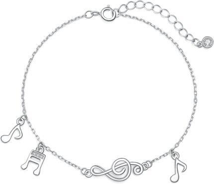 925 Sterling Silver Music Bracelet Musical Note Jewelry Gifts Ideas for Music Lovers Women Musician Students