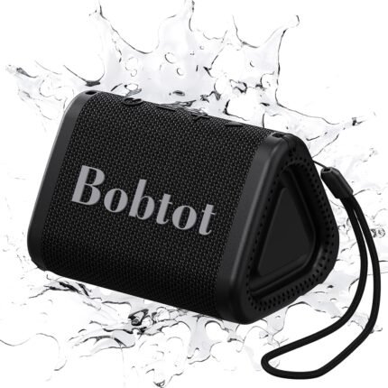 Bobtot Portable Bluetooth Speaker Wireless, IPX7 Small Shower Speaker Waterproof, 15H Playing Time, Loud and Stereo Sound with Bass, TWS Pairing for Party, Camping, Travel, Black