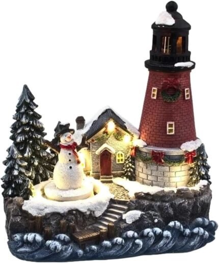 Lightahead Christmas Scene LED Lighted Lighthouse with Turning Snowman Figurine, A Musical Decoration with 8 melodies