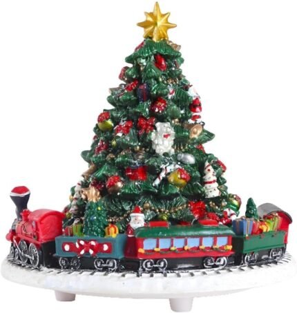 Lightahead Musical Christmas Tree with Rotating Train – Plays Festive Christmas Melodies – Polyresin Holiday Music Box Ornament