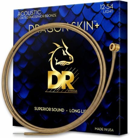 DR Strings Acoustic Guitar Strings | DRAGON SKIN+ Coated Phosphor Bronze | DAP-12 | Superior Sound with Comfortable Feel & Long Life | Light 12-54 (DAP-12)