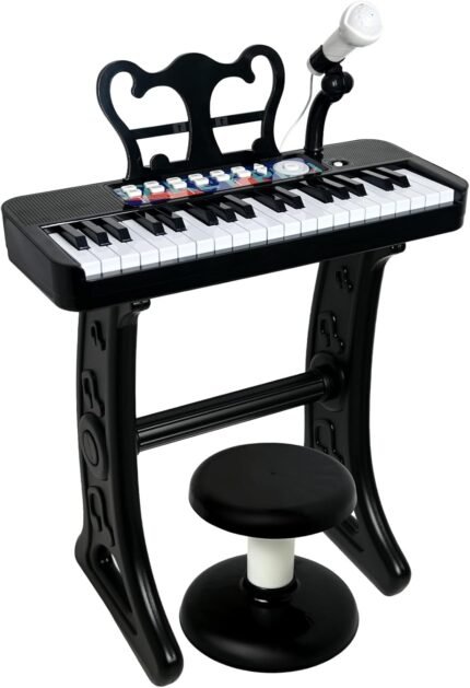 Love&Mini Piano Toy for Kids – 37 Keys Piano Keyboard Toy with Stool and Microphone, Black Electronic Musical Instrument Birthday Gift for Kids 3 4 5 6 7 8 Years Old Boys and Girls