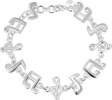 Funny Silver Jewelry Gift For Musician Women,S925 Silver Music Notes For Daughter Sisters Friends Lover Colleague Birthday Christmas Fashion Bracelet