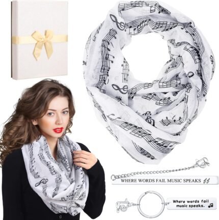 Geyoga 4 Pcs Music Lover Gifts for Women Include Music Note Infinity Loop Scarf Keychain Keyring Bookmark with Present Box Inspirational Teacher Birthday Gifts for Singers Piano Teacher