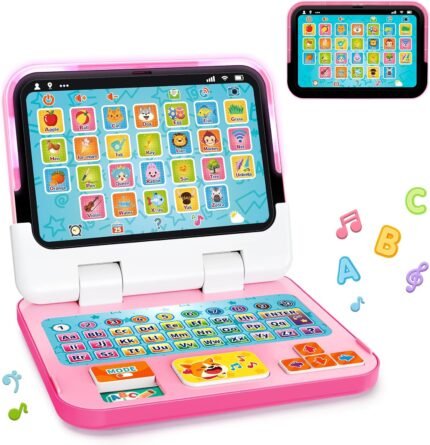 Learning Toy for Kids 1 2 3 Year Old Boys Girls, Learning Laptop for Toddlers 1-3, Interactive Educational Toys with Music Sounds Lights, Christmas Birthday Gifts for Baby Kids Age 12-18 Months, Pink