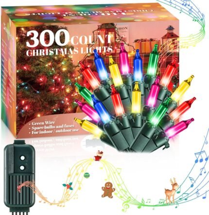 Enhon 300 Bulb Christmas Lights with Music, Musical Singing Christmas Lights with 25 Classical Holiday Songs, 7 Function Mode, Adjustable Volume and Mute (5 Color)