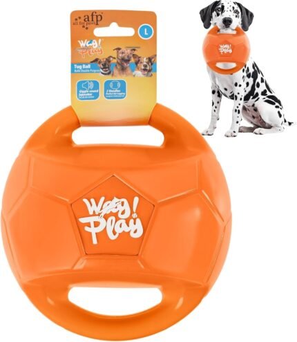 ALL FOR PAWS Dog Ball Toy for Medium & Large Dogs, Dog Balls for Tug of War & Fetch, Fetch Toy with Handles and Giggle Sound, Orange