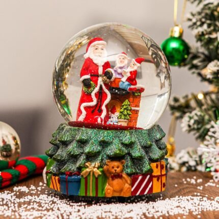 Christmas Glass Snow Globe Polystone Musical Water Globe with Music for Holiday Decoration, Santa Claus and Snowman