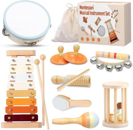 Stoie’s Kids Musical Instruments Set – Wooden Percussion Instruments for Toddlers, Xylophone, Tambourine, Maracas, Music Toys for Toddlers, Preschool Musical Instruments