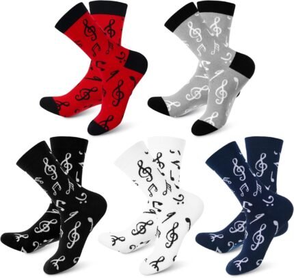 Ramede 5 Pairs Music Socks Women Men’s Novelty Guitar Piano Musical Note Socks for Music Teachers Gifts
