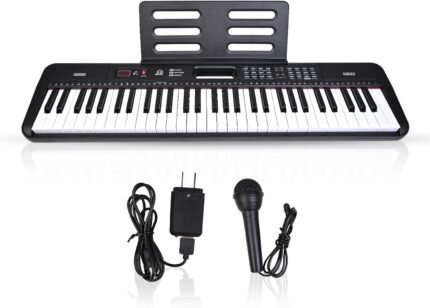 61 Key Keyboard Piano, Portable Electronic Keyboard Piano for Beginners with Speakers, Microphone, Sheet Music Stand, Digital Music Keyboard for Beginners