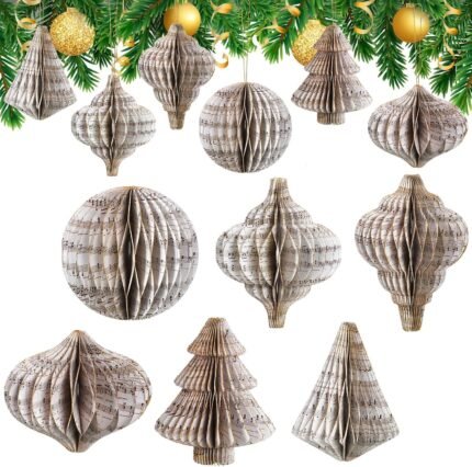 Shellwei 12 Pcs Christmas Music Note Ornament 3 Inch Christmas Tree Paper Honeycomb Hanging Decorations Music Note Themed Balls Ornaments for Xmas Tree Party Decoration(Classic)