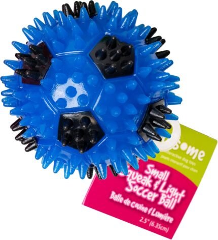 Gnawsome 2.5” Squeak & Light Soccer Ball Dog Toy – Small, Promotes Dental and Gum Health for Your Pet, Colors will vary, 2.5″ for All Breed Sizes