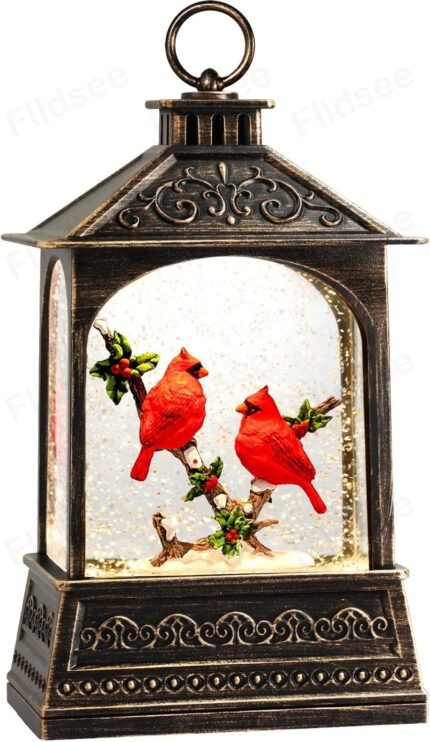 Snow Globe Lantern Christmas Decorations Indoor, Musical Snowglobe Light with Timer, USB & Battery Powered Music Box, Cardinal, Xmas Holiday Home Decor