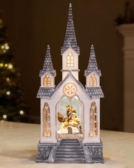 Large Christmas Church Nativity Snow Globe Light up Snowglobe with Music, 9.84″ White Christmas Snow Globes for Kids Adults, 6H Timer & Dual Power, Angle Snowglobes Christmas Decorations Indoor