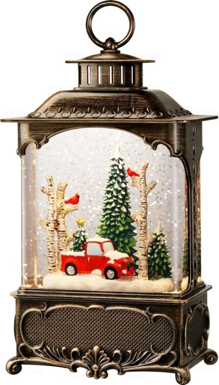 Price: (as of – Details) Flldsee Snow Globe Lantern Christmas Decorations Indoor, Musical…