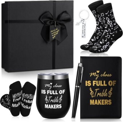 6 Pcs Music Teacher Band Teacher Gifts for Men My Class Is Full of Treble Makers 12 oz Stainless Steel Cup Socks Keychain Pen Notebook Box for Christmas Musicians Musical Lovers Gift