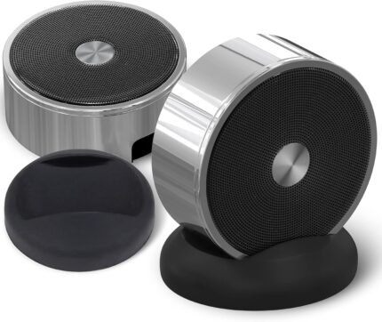 Bluetooth Speaker Set: Wireless Stereo Dual Pairing Portable Twin TWS System With Big Rich Bass Hi-Fi Multi-Room Indoor Outdoor Use Home Deck Pool Work Travel Party Camping Gift Decor Idea (Chrome)