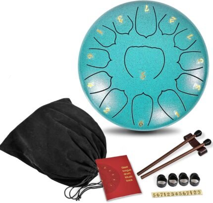 Steel Tongue Drum: 6.5-inch 13-tone Musical Percussion Instrument, Rain Drum for Outside – Turquoise