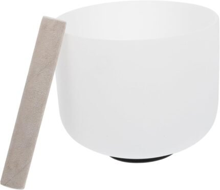 VANZACK 8-Inch White Chakra Crystal Singing Bowl Set for Yoga Meditation Mallet Therapy Sound Healing Music Bowl