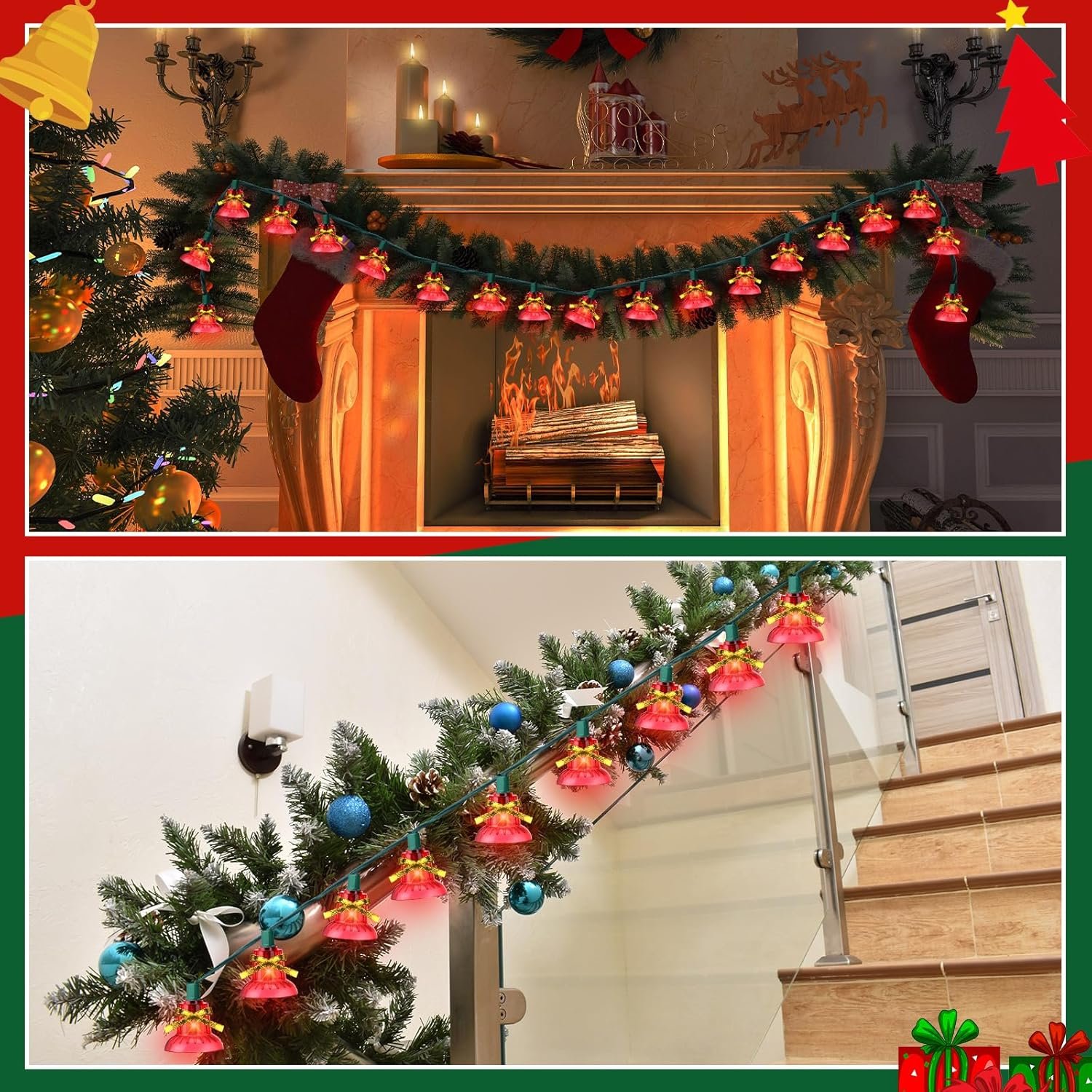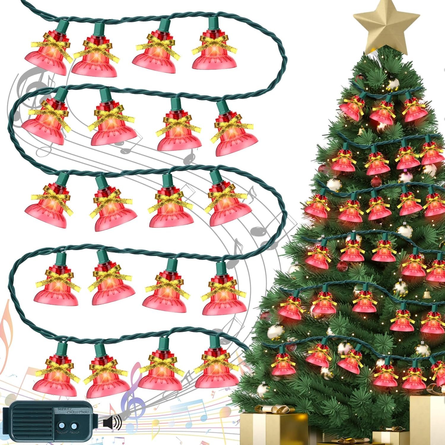 1 Set 30 Pcs Musical Christmas Lights, 9.6 ft Musical Bell String Lights, 25 Classical Holiday Songs, 7 Functions Clear Bulb with Bells for Xmas Indoor Home Decorations(Red)