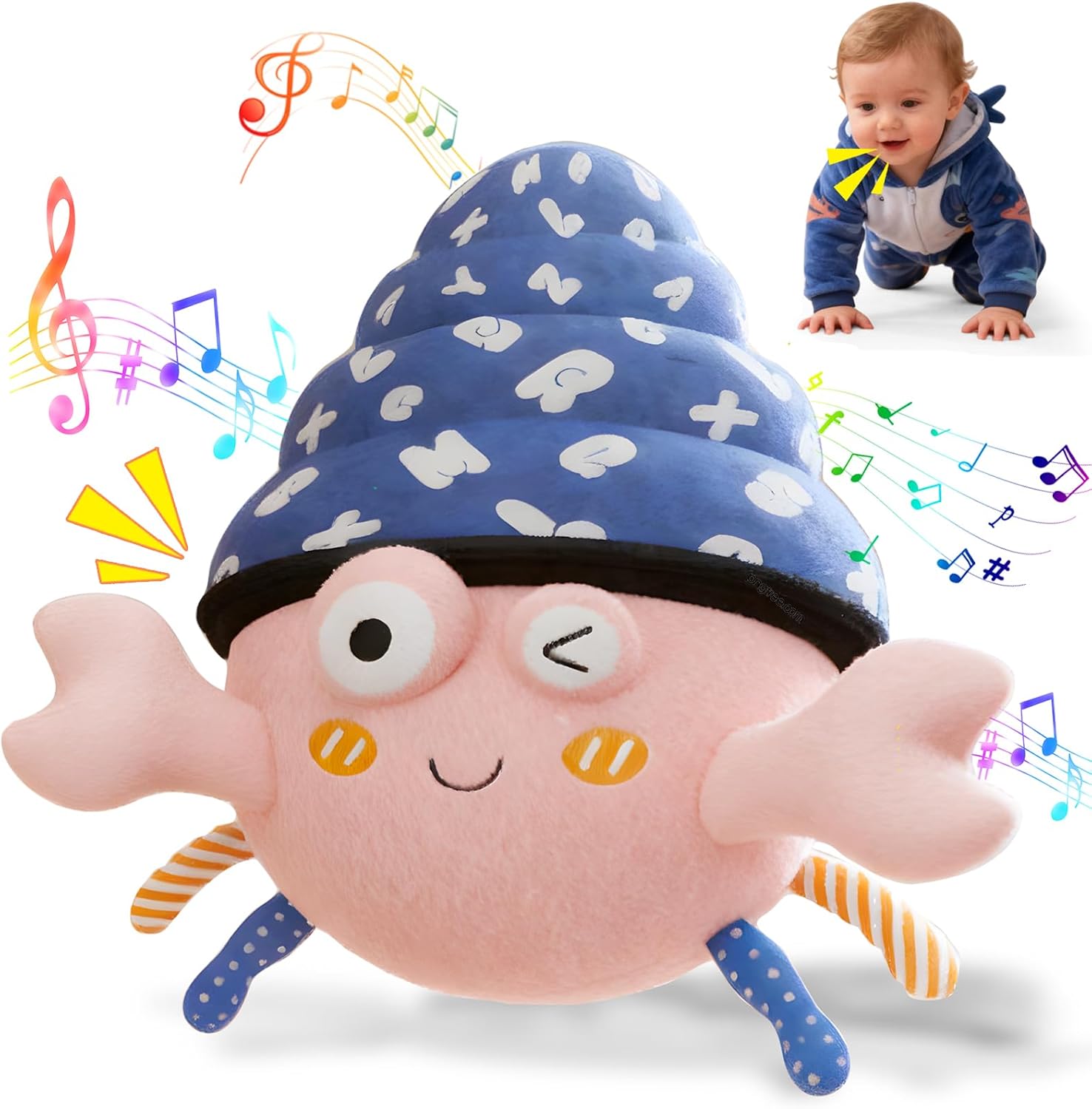 Music Crawling Hermit Crab Baby Toy 6-12 Months,Montessori Toys for 1 Year Old+,Infant Stuffed Animal Toy with Tummy Time Toy & Floor Play,Dancing & Talking Soft Plush Toy for Boys and Girls