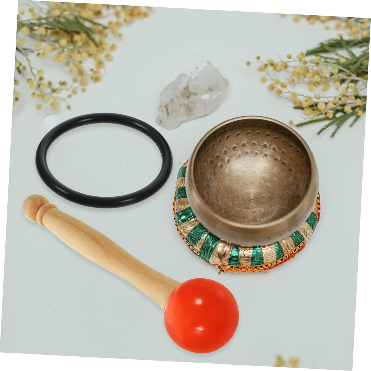 1set Crystal Singing Bowl Mallet Hardness Rubber and Handle for Yoga Meditation Sound Therapy Includes and Cushion
