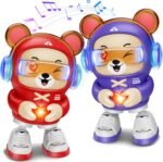 2 Pcs Dancing Bear Toys, Baby Dancing Moving Crawling Musical Toys Age 3-12 Months, with Light, Musical and Dancing, Birthday Gift for Age 1 2 3 4 Year Old Toddlers
