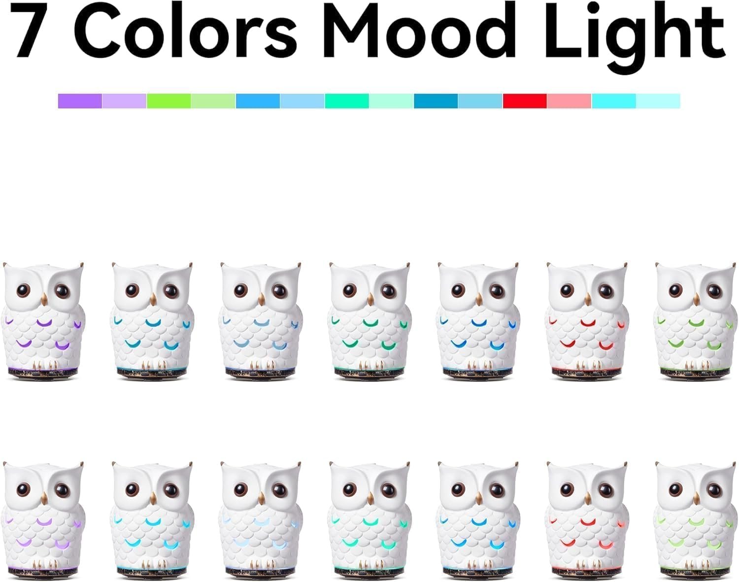 200ML Unique Owl Essential Oils Diffuser, Ceramic Hand-Painted, Gifts for Boys Girls Women Men Kids, Quiet Cool Mist Humidifier with Waterless Auto Shut-Off, 7 Colors LED, Scent for Home, Office, Yoga