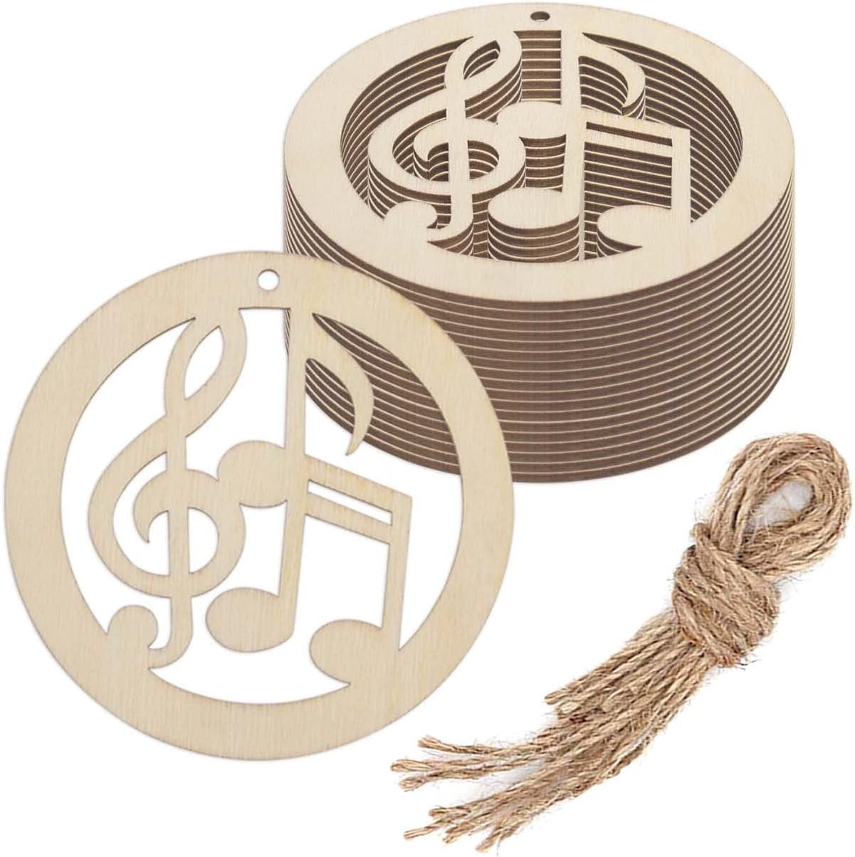 20pcs Music Note Wood DIY Crafts Cutouts Wooden Round Musical Note Shaped Hanging Ornaments for Musical Theme Christmas Tree Cutout Holiday Wood Hanging Wall Decoration